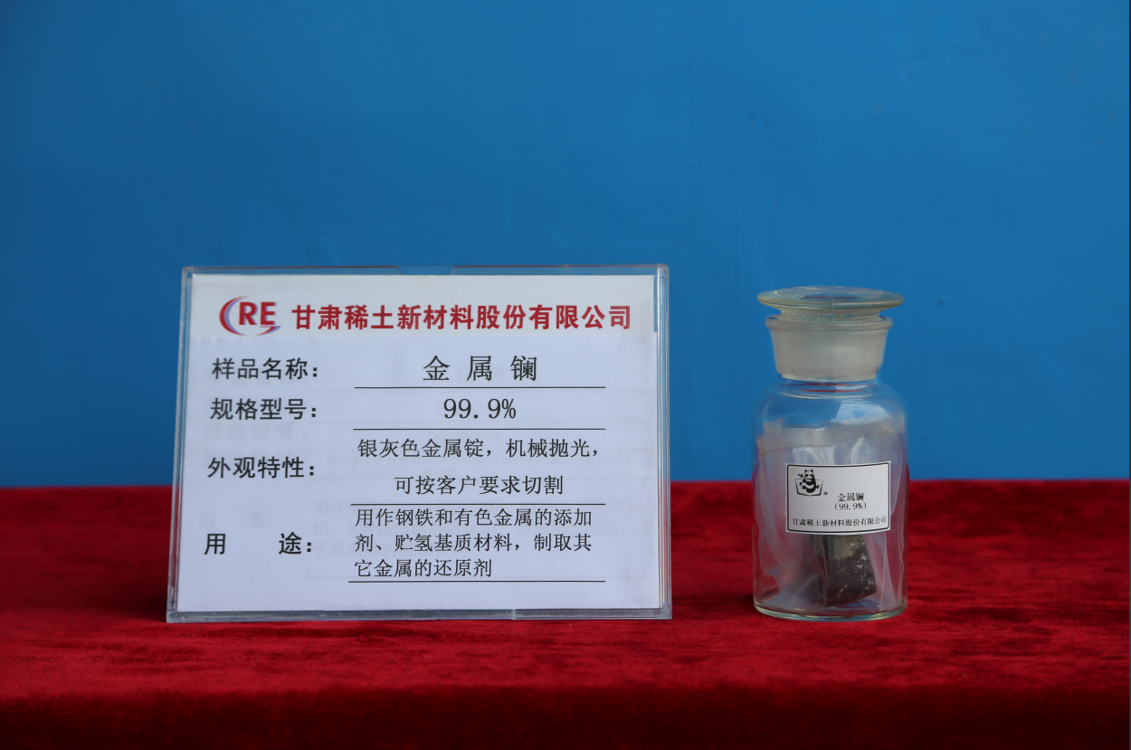 金屬鑭 Lanthanum Metal | TREM≥99 La/REM≥99.5 | 錠子或塊狀,金屬表面清潔、無電解質夾雜、裂紋、新鮮截面呈銀灰Ingot or block, metal surface cleaning, no electrolyte inclusions,cracks, fresh section in silver gray | 用作鋼鐵和有色金屬的添加,貯氫基質材料,制取其它金屬的還原劑 used as additive steel and nonferrous metals, hydrogen storage base material, reduction agent in producing other metals | 鐵桶包裝、凈重:250kg Package:Iron drum Net weight:250kg |